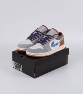 Nike Air Jordan 1 Low SE Phantom “Repaired Denim Swoosh” atau dikenal juga sebagai Air Jordan 1 Low “Phantom/Multi-Color-Coconut Milk”. Berikut deskripsi sepatu tersebut: Warna dan Desain: Sepatu ini memiliki perpaduan warna netral seperti phantom (abu-abu muda), coconut milk (krem), dan multi-color yang mencakup aksen amber brown (cokelat) dan biru. Desainnya memadukan gaya klasik Air Jordan 1…