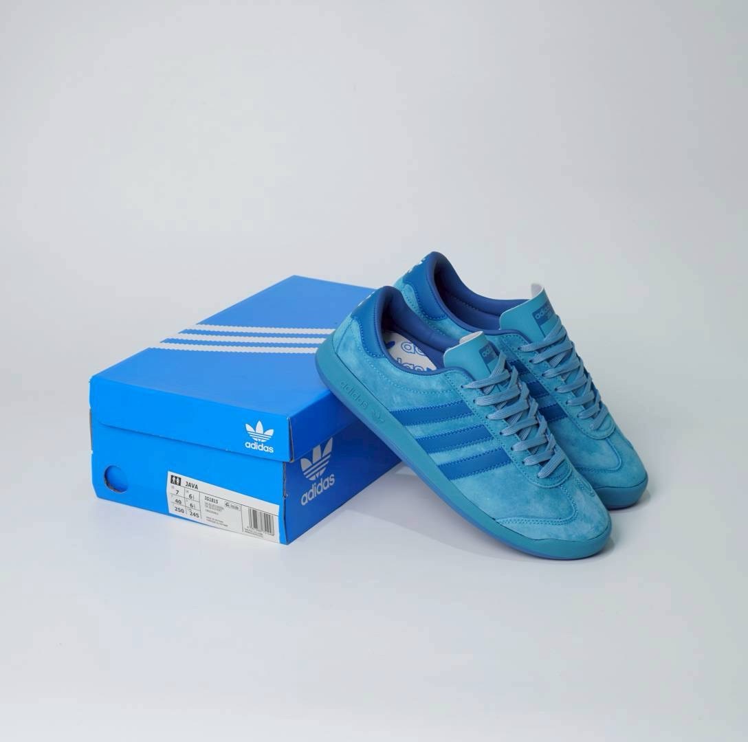 Adidas Java, yang merupakan bagian dari seri legendaris Adidas Island Series. Sepatu ini pertama kali dirilis pada tahun 1977 sebagai salah satu model langka dari seri tersebut, dan baru-baru ini dirilis ulang.