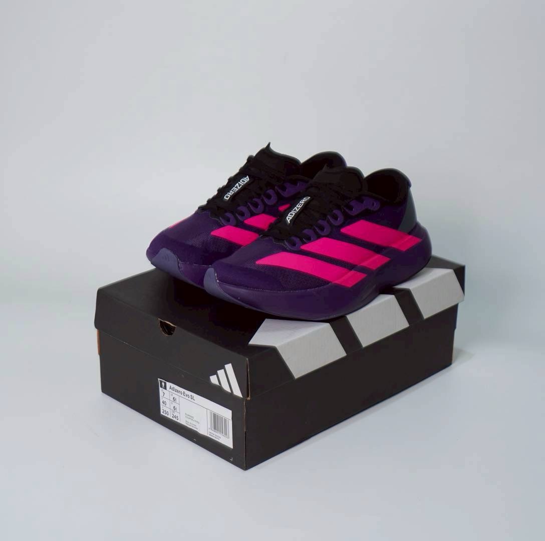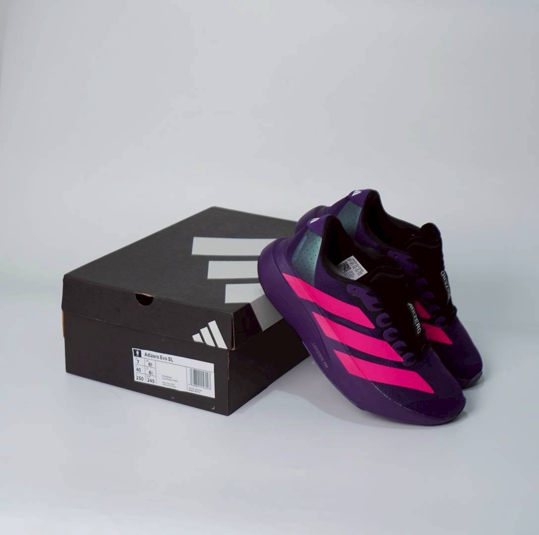 Adidas Adizero Evo SL. Sepatu ini dirancang untuk lari dan memiliki beberapa fitur utama: