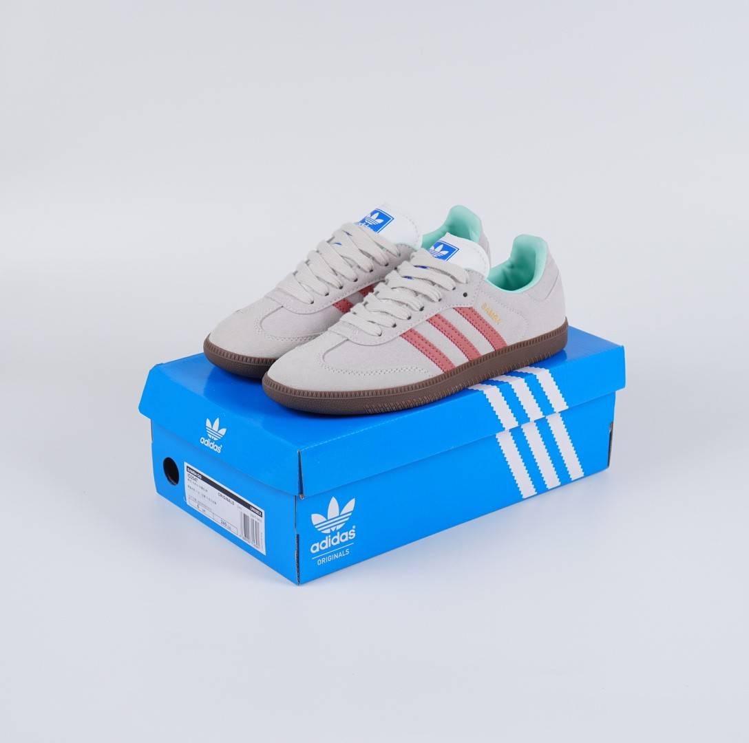 Adidas Samba OG Wonder Clay Strata. Sepatu ini merupakan versi modern dari siluet klasik Adidas Samba, yang awalnya dirancang sebagai sepatu sepak bola dalam ruangan pada tahun 1950-an.