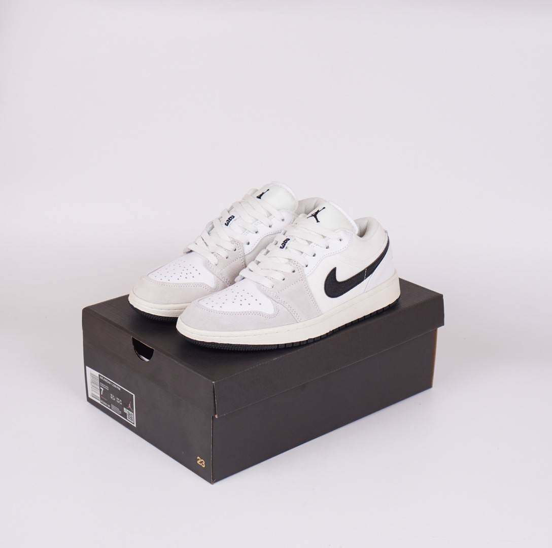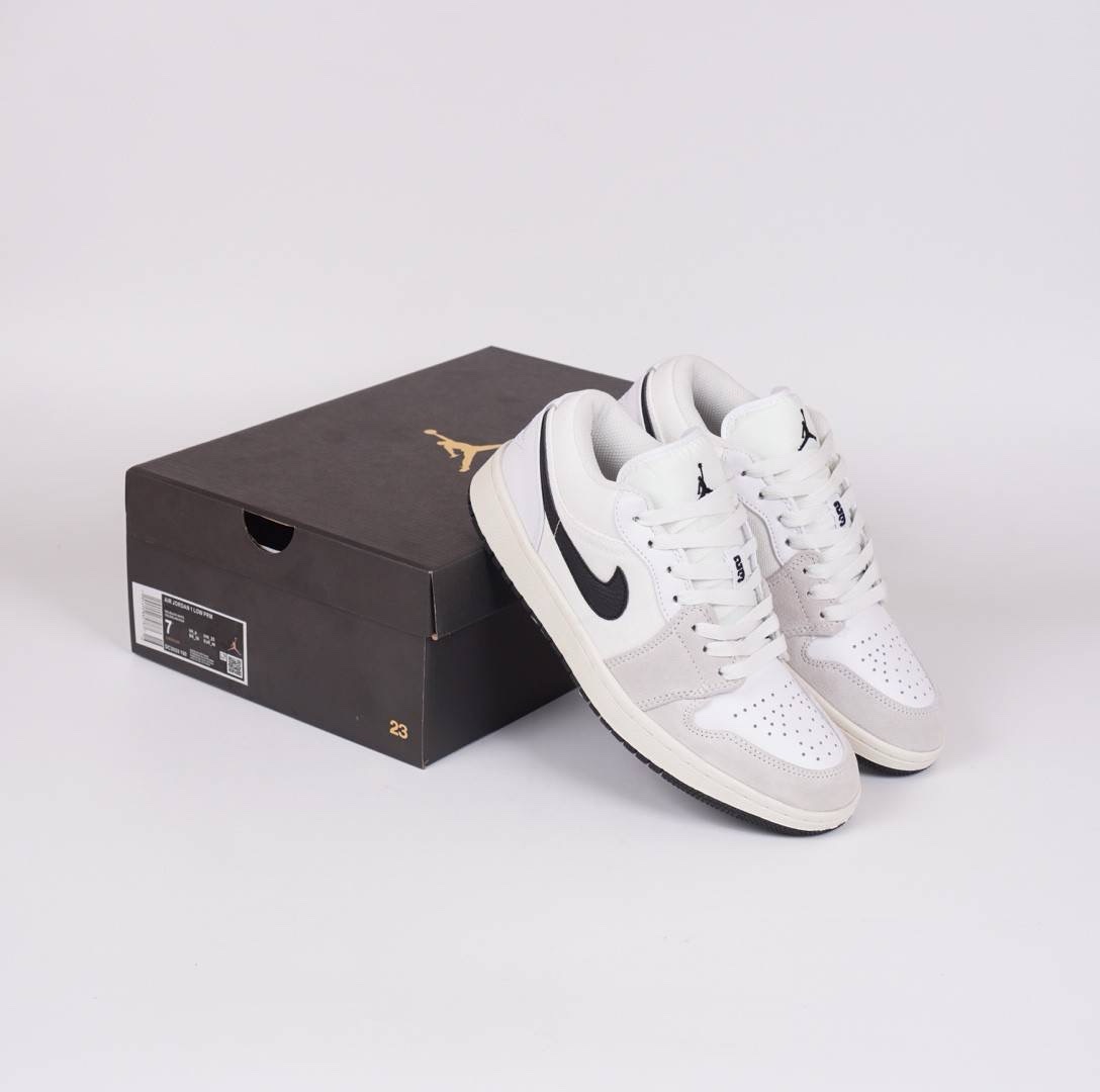 • Deskripsi: Sepatu ini merupakan versi rendah (low-top) dari model Air Jordan 1 klasik. Dibuat dengan kombinasi bahan kulit premium dan jaring (mesh) untuk kenyamanan dan daya tahan. Sepatu ini juga dilengkapi dengan teknologi bantalan Air-Sole di bagian tumit dan sol karet berbintik untuk traksi yang optimal