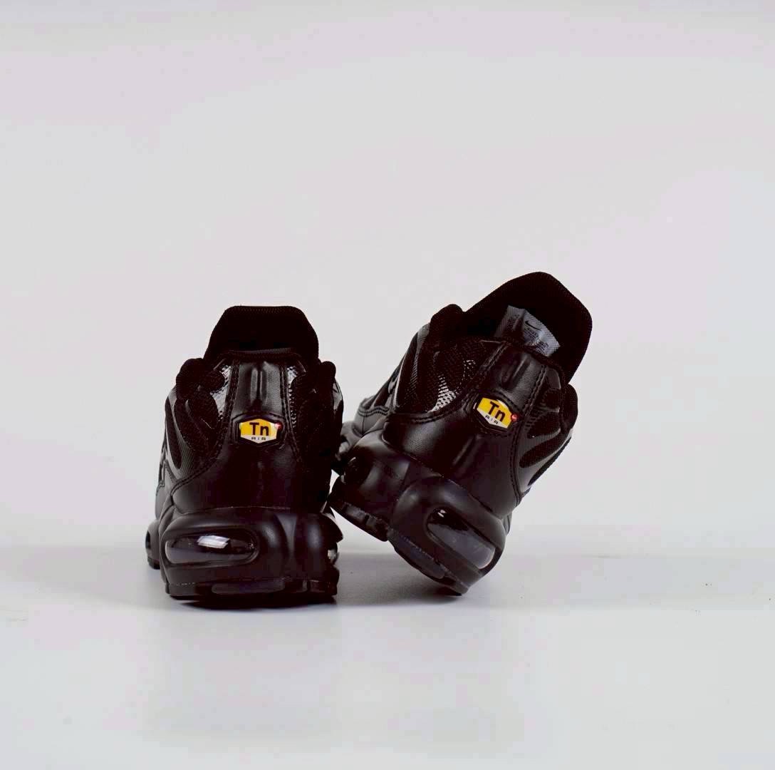 Sepatu ini dikenal dengan julukan “TN” yang merupakan singkatan dari teknologi “Tuned Air” yang digunakan pada unit Air di sol sepatu, memberikan stabilitas dan bantalan yang luar biasa. Desainnya menampilkan garis-garis bergelombang yang khas, aksen TPU, dan bagian atas yang terbuat dari bahan mesh yang sejuk dan nyaman. Sepatu ini memiliki tampilan serba hitam (triple black) yang elegan dan mencolok. Aksen TPU yang menonjol terinspirasi dari ekor paus dan jari-jari ikonik yang terinspirasi dari pohon palem dan ombak laut, menambahkan struktur dan gaya pada sepatu ini.