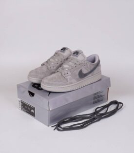 Nike SB Dunk Low Reigning Champ Sepatu ini adalah varian dari Nike SB Dunk Low yang merupakan hasil kolaborasi dengan merek pakaian asal Kanada, Reigning Champ. Sepatu ini memiliki fitur-fitur berikut: Warna: Abu-abu di seluruh bagian sepatu. Material: Bagian atas sepatu menggunakan bahan suede dengan pola timbul (debossed pattern) pada bagian tumit. Desain: Sepatu ini dilengkapi dengan logo…